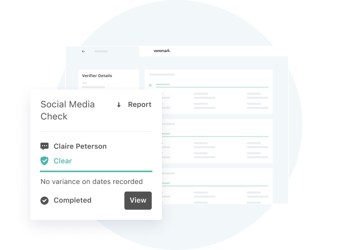 The social media check result is delivered as part of the verified candidate profile.